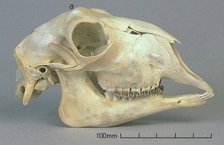 ![]() | 1.Goat skull, lateral view. Anglo-nubian breed a) Horns grow from a point further forward than those of sheep. |