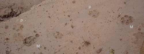 The shapes are similar but the manus is larger Foxes have dense hair between their toes, especially in winter. The imprint of this hair can be seen clearly in the manus (lower) print. |