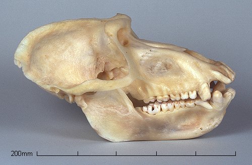 ![]() | 1.Hamadryas Baboon skull, male, lateral view. This individual was over 30yrs old when it died. |